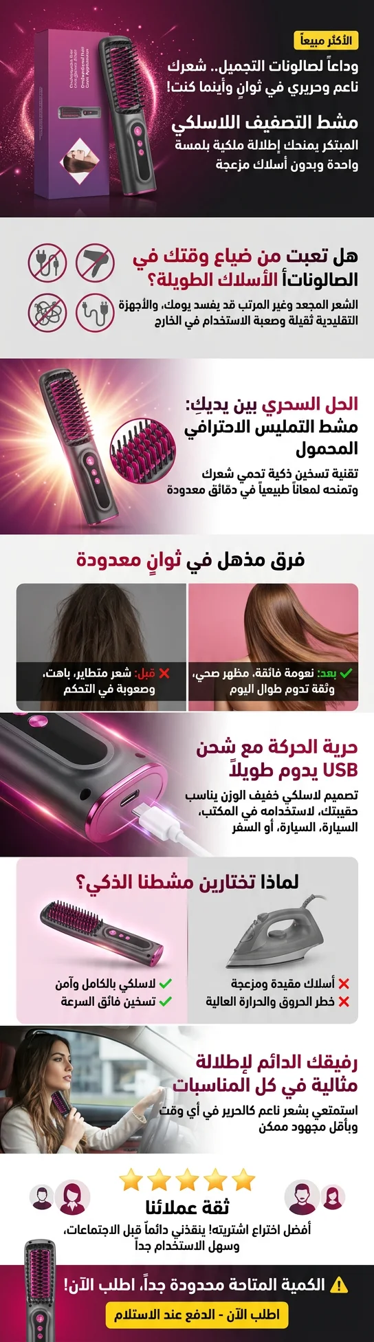 مشط تجعيد الشعر اللاسلكي ومشط فرد الشعر اللاسلكي